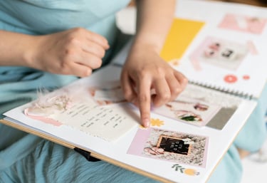 Laisser émerger des traces concrètes : dessins, collages, objets, supports qui deviennent des repères précieux pour la personne et pour son entourage.